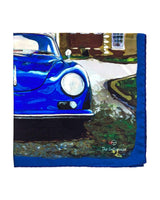 Porsche, Jaguar, Lancia, Aston Martin: cars that have left a permanent mark on history, here portrayed oil on canvas for a luxury and timeless silk scarf handmade in Italy like a piece of art.