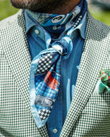 A refined pattern immortalizes the symbols of the 24 Hours of Le Mans on a silk scarf: a picture story of a great history. Not only the “Le Mans-style” start, the Dunlop Bridge, the checkered flag, the Ferris wheel and the fateful 4 pm start, but also the cars that triumphed at the Circuit de la Sarthe between the 50’s and 60’s, from the Ferrari 375 Plus to the Aston Martin DBR1, from the Jaguar D-Type to the Mercedes Benz 300 SL Gullwing and Jaguar C-Type. We asked The Outlierman designers to celebrate the myth of the 24 Hours of Le Mans with a pattern that communicates beauty and sporty passion: they gave us a design that spans day and night like the most iconic of French races, for a timeless style.