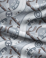 Original yet classy, the “Outlierman’s Roads” pattern sums up the key elements of The Outlierman style in a dynamic, almost cinematic view. Classic car icons, the driving passion and the Gentleman Driver style essentials meet in a vibrant design, full of details, that invites you to get behind the steering wheel to constantly follow your distinctive path. The 100% cotton drill fabric is an accurate choice made by our designers: soft to the touch yet with a strong, highly-durable texture, ready to travel by your side over a long time.