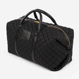 The transformative Malle Escape Duffel is the perfect weekender, handcrafted with our beautiful black British waxed canvas and luxurious bridle leather, the entire exterior of the duffel is quilted and padded to protect the contents when on the move. The Escape Duffel has 2 modes; Compact and Expand. Simply unhook the 2 G-hooks on each end to increase the capacity of the duffel, enabling you to carry more and to carry larger items like suits, crash helmets and larger travel accessories.